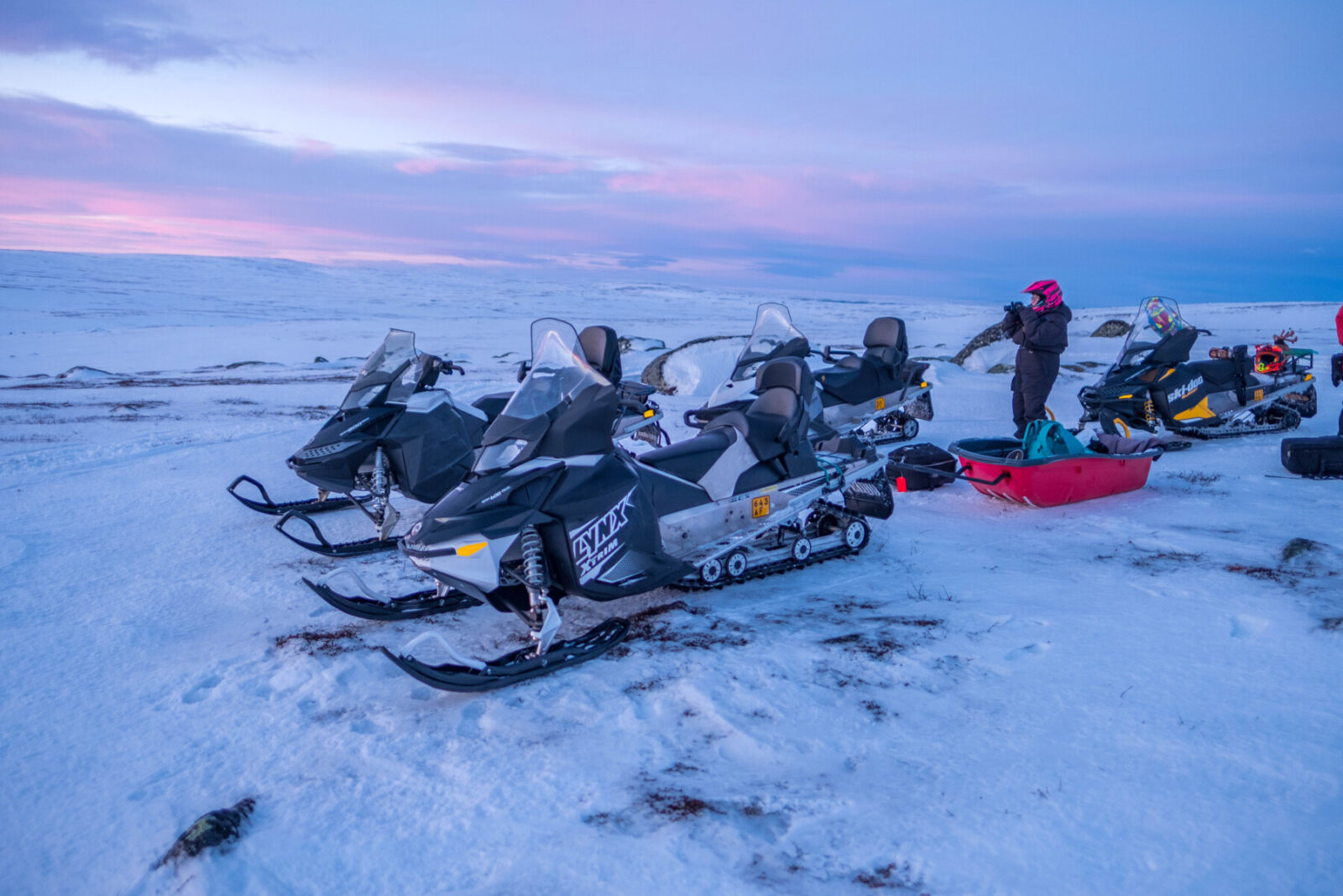 The snowmobiles are either 600 ace or 900 ace or, for an extra price, an 800 e-tec deep snow snowmobile. The guide is a local and knows the fells like his own backyard. In addition to regional knowledge, the guide has years of experience in organizing snowmobile safaris.