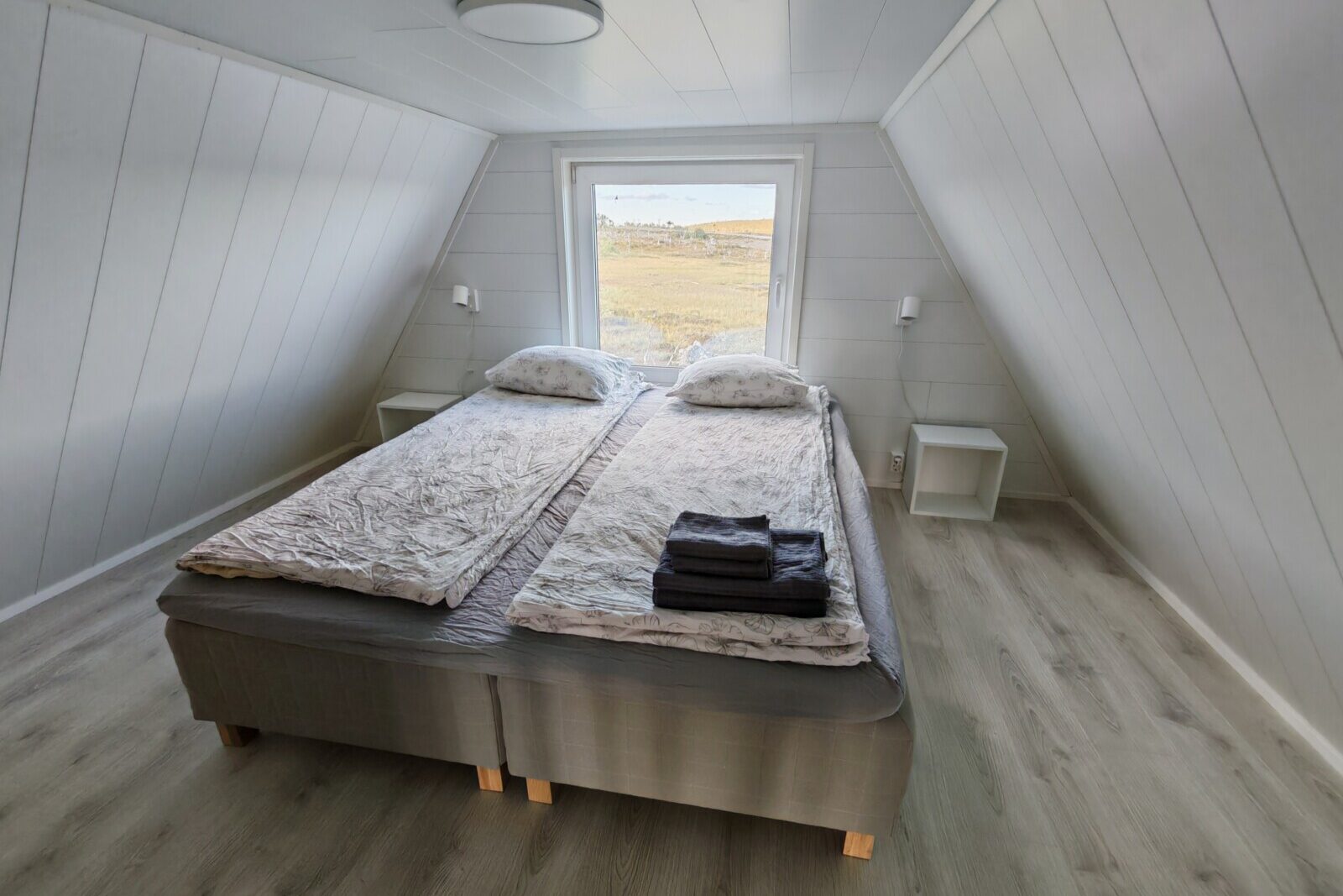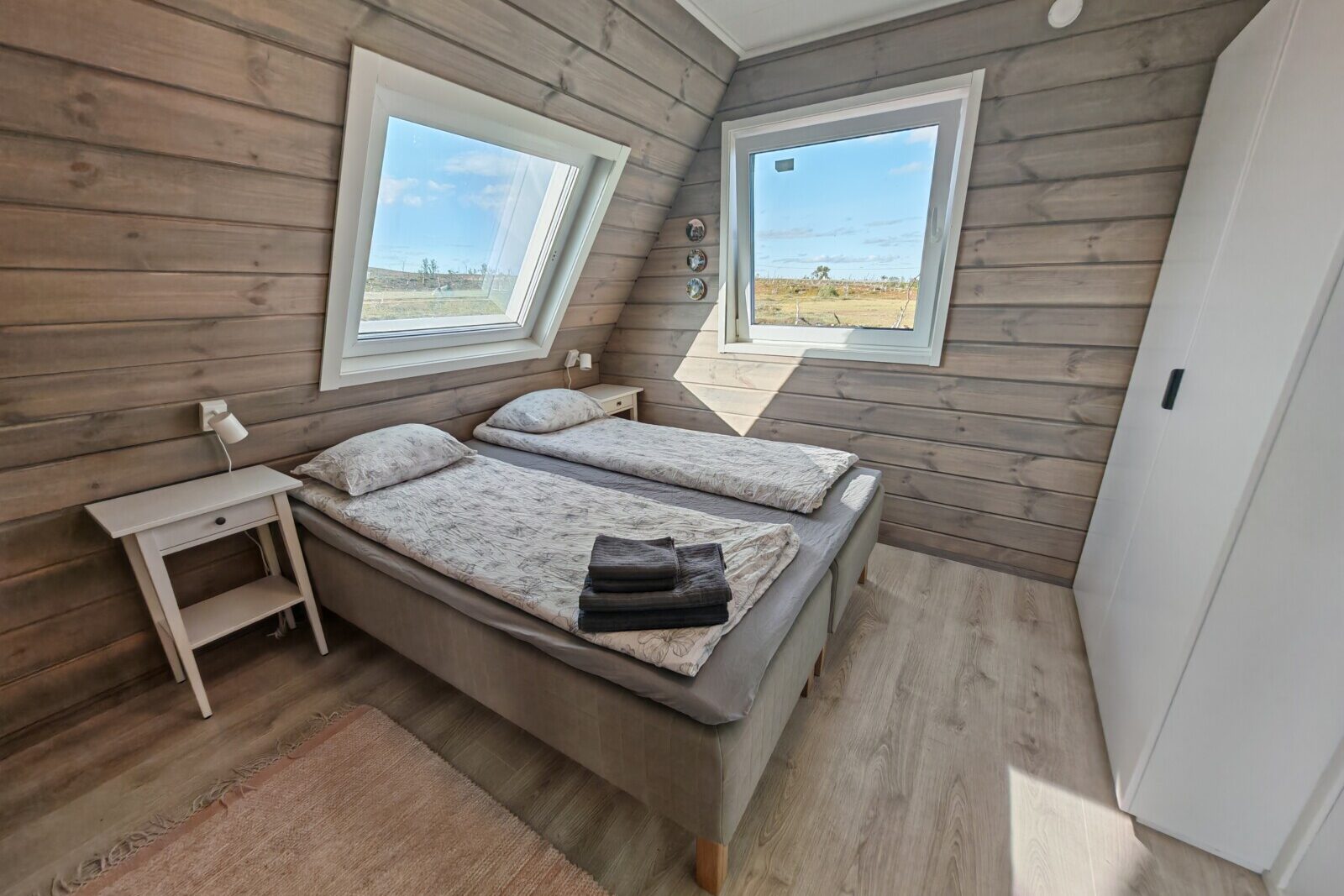 Kaksi makuuhuonetta ja yläkerran alkovi takaavat riittävästi tilaa jopa viidelle yöpyjälle. Alakerran makuuhuoneissa on hyllyt ja kaappitilaa. Makuuhuoneissa on pimennysverhot.