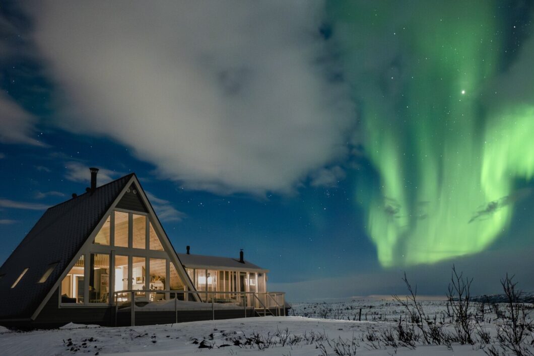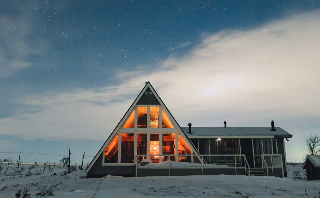 Jaetusta olohuone-keittiöstä avautuu kauniit maisemat erämaaluontoon ympärivuotisesti. Kaamoksen aikaan näet horisontin takana piilottelevan auringon punertavan kajon, kesäaikaan lähimailla liikuskelevat porot saattavat poiketa pihaan saakka eivätkä riekotkaan ole harvinainen näky mökkiemme pihapiireissä.